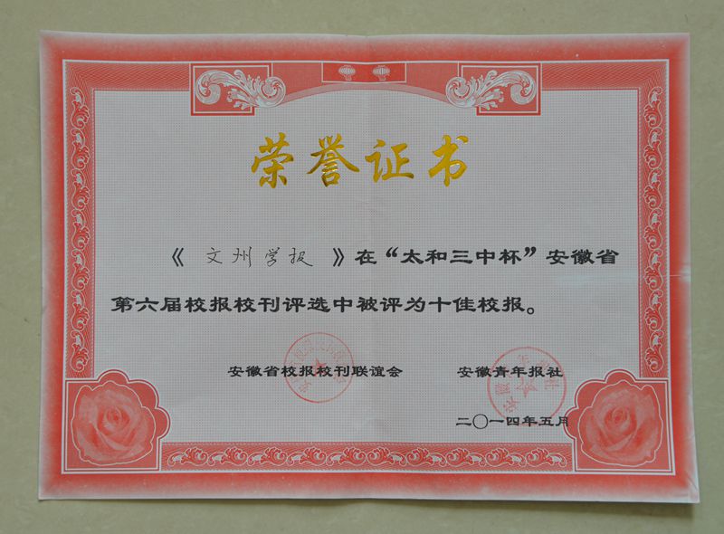 我校《文州学报》被评为安徽省十佳校报