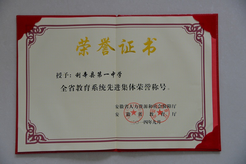 我校荣获全省教育系统先进集体荣誉称号