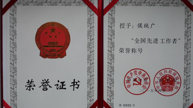 中共中央、国务院授予我校侯纯广老师“全国先进工作者”荣誉称号