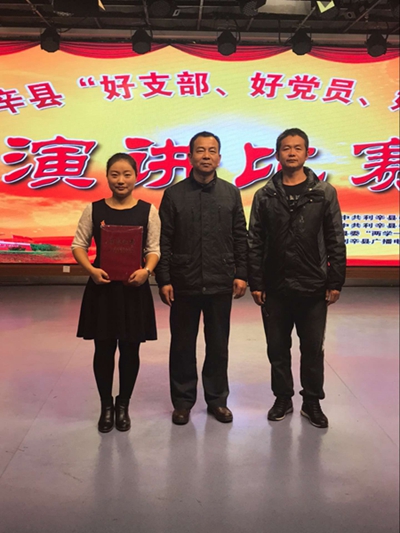 在全县“两学一做”学习教育“好支部、好党员、好故事”演讲比赛中,许言言老师取得第二名的优异成绩,我校荣获优秀组织奖。