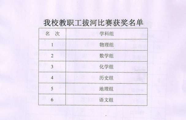 我校教职工拔河比赛获奖名单