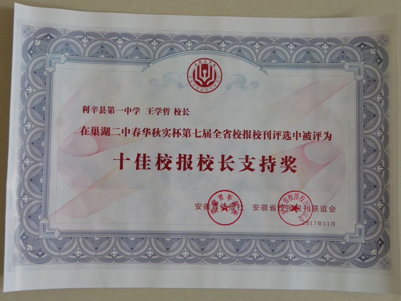 王学哲校长荣获安徽省十佳校报校长支持奖