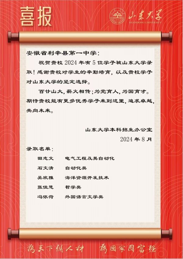 利辛一中(含利辛一中北校区)2023级高一录取学生名单