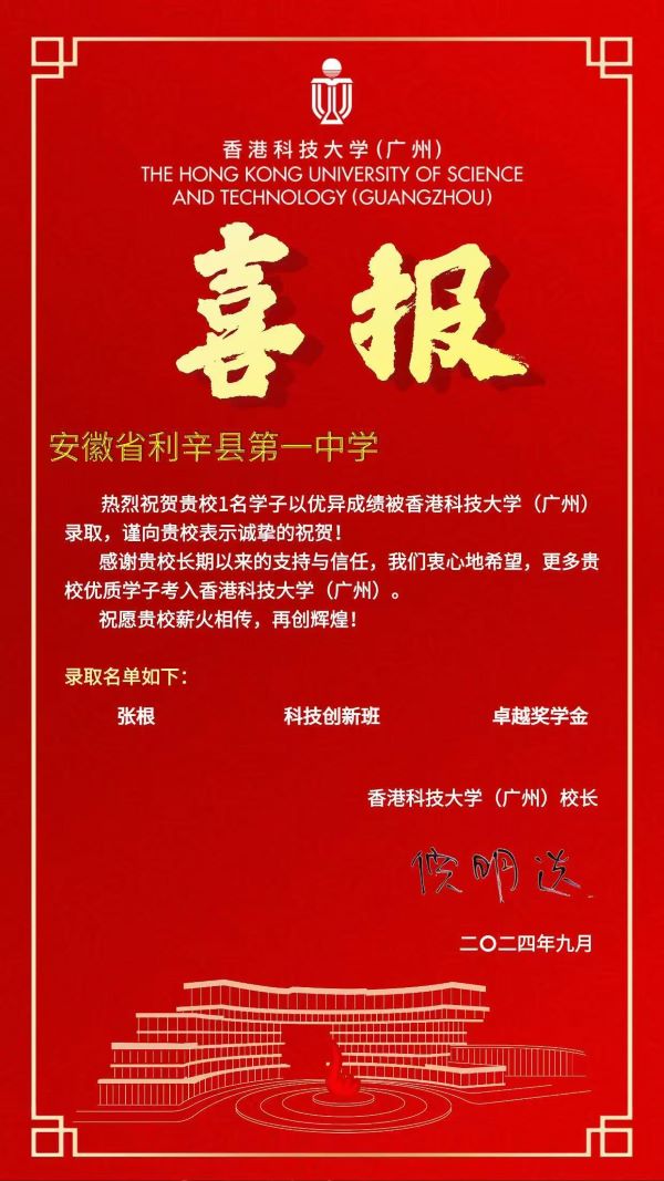 香港科技大学(广州)致利辛一中喜报