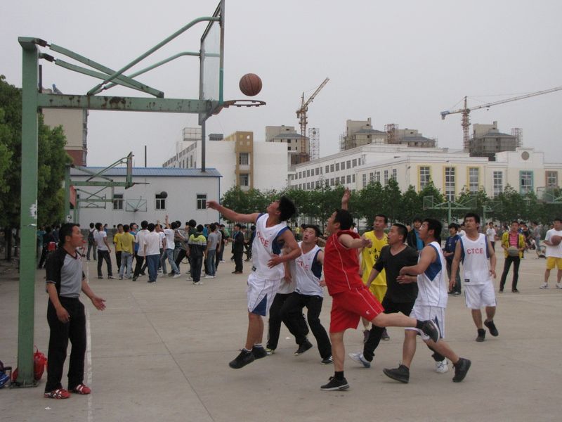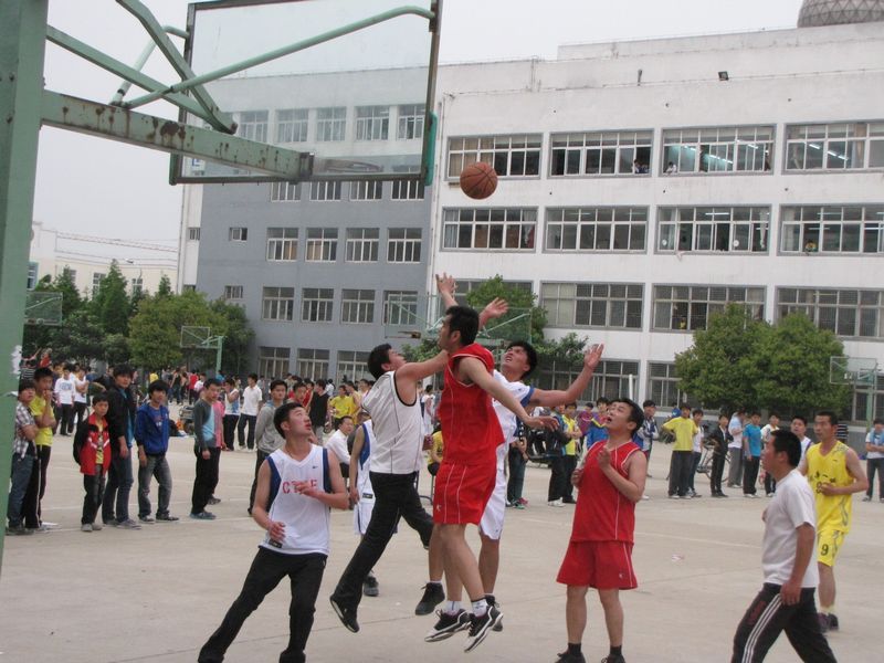 2012428日下午,我校校篮球队和中铁四局我校滨河校区建设工地代表队开展了一场篮球友谊赛。