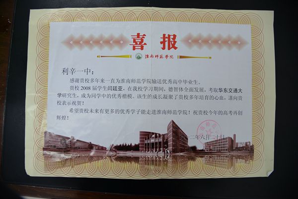 我校校友闫廷亚考取华东交通大学研究生喜报