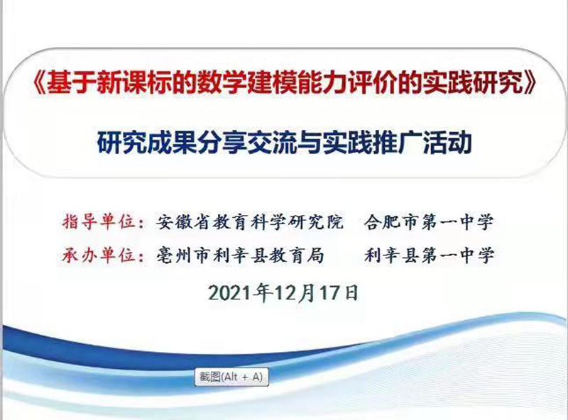 2021年12月17日,合肥一中数学教研组长、“双新”国家级示范区合肥市高中数学新课程实施研究指导中心组成员沐方华,合肥一中数学竞赛金牌教练、高二年级组长洪雨沛,我校校友、现合肥四中朱润老师,合肥四中卞显亮老师,不辞辛苦来利辛一中开展《基于新课标的数学建模能力评价的实践研究》成果分享交流与实践推广活动。