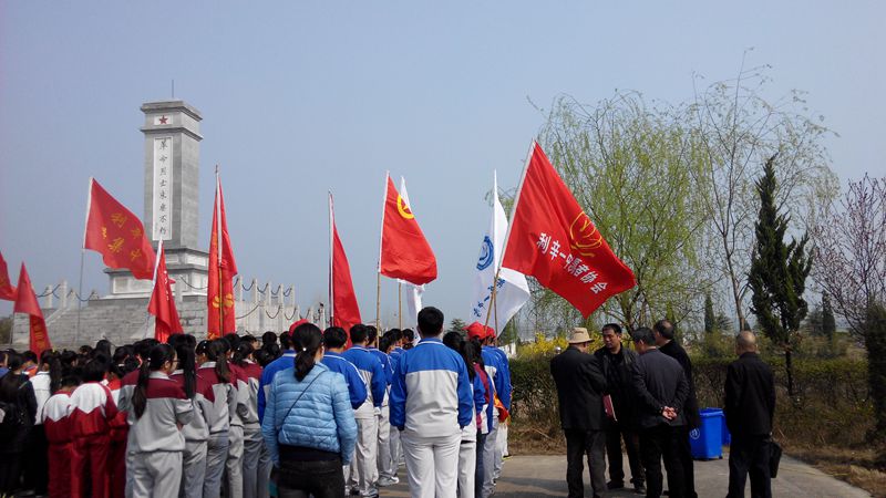 2015年3月28日上午,在清明节即将来临之际,我校学生代表在县关工委和校团委的组织下驱车前往位于路集的利辛烈士陵园祭奠先烈。