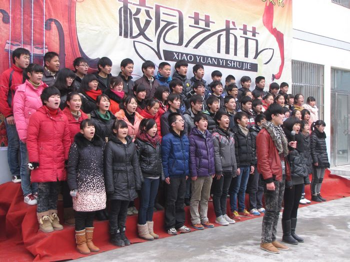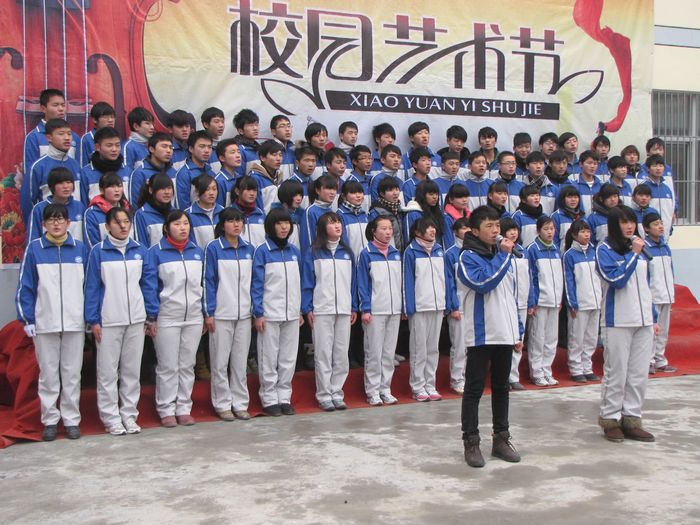 2012年12月22日,我校在北校区室外举行高一年级合唱比赛,比赛内容包括自选歌曲和校歌。当日天气寒冷,雾气茫茫,同学们却精神抖擞,士气高昂,力争在比赛中取得好名次。同学们激昂高亢的歌声回荡在校园上空。