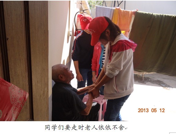 为弘扬雷锋精神,培养学生敬老、爱老、助老的传统美德。5月12日上午我和侯纯广老师带领高一(18)班,(35)班及利辛一中志愿协会的学生,带着牛奶,蛋糕和水果走进城关镇城东敬老院,为孤寡老人送去温暖,以实际行动实践雷锋精神。在敬老院同学们为老人表演热情洋溢的文艺节目,帮老人洗衣叠被、打扫卫生,还主动为老人们捶捶肩,揉揉背,陪他们亲切地拉家常,了解老人们的身体和生活状况,倾听老人讲述自己曾经的故事,并从敬老院工作人员那里了解到党和政府及全社会对老人们的关怀。近两个小时的慰问活动中,同学们的关爱行动,赢得老人们的阵阵掌声,老人们布满沧桑的脸上洋溢着甜美的喜悦。当同学们要离开敬老院时,老人家们依依不舍,有的老人流下了激动的眼泪。