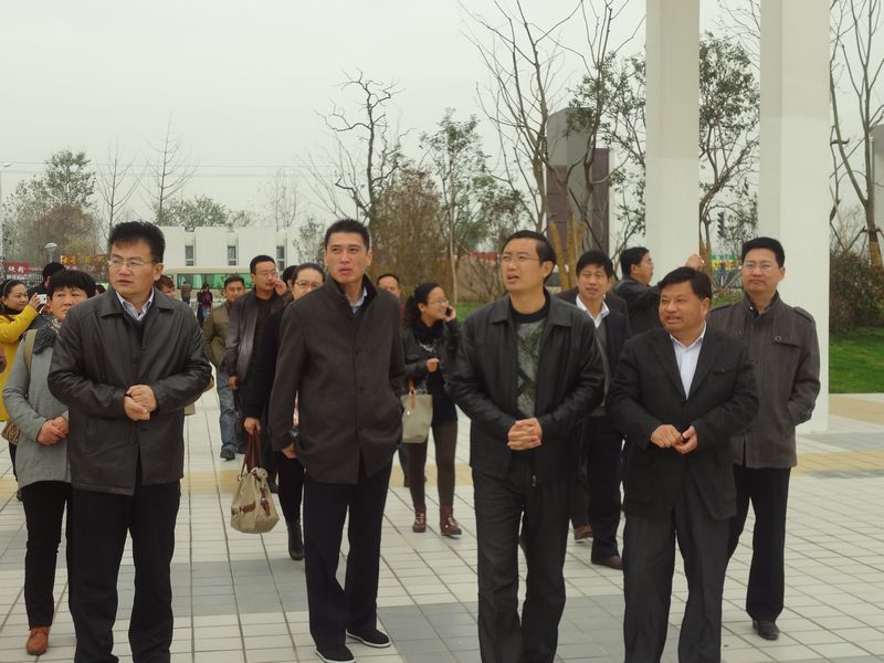 2013年11月12日蒙城县委常委、组织部长刘峰(左二)在校长王学哲(左一)的陪同下参观我校。