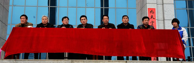主席台:王学哲(左四)、潘化鹏(左五)、吴峰(左三)、任锋(左六)、王晓泉(左二)、侯云玉(左七)、李文革(左一)、学生校长助理(右一)