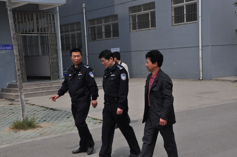 2012年4月19日上午,市交警大队队长李中立一行在我校纪检书记侯云玉的陪同下,到我校检查“交通安全宣传进学校、进单位”活动情况。检查后,李队长对我校安全教育工作给予充分的肯定,特别表扬了我校向全体学生发放安全知识手册的做法。