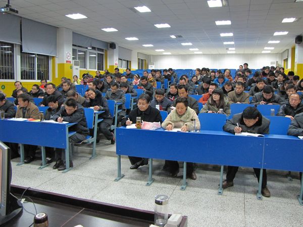我校全体党员认真听讲、作笔记