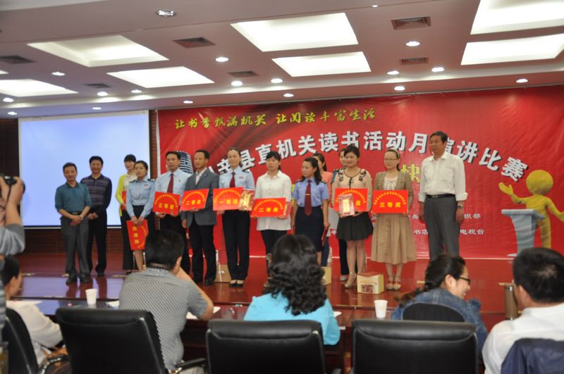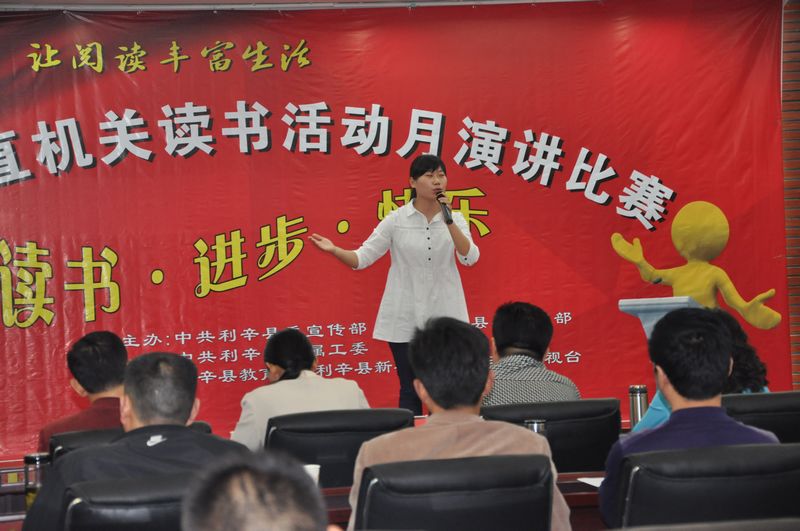 2013年5月10日下午,在卫生局五楼会议室举办利辛县直机关读书演讲比赛,我校派出由校党委书记潘化鹏领队,吴峰副校长、工会副主席马颍、李卫东、团委副书记郑秀云、语文组李雨辰、音体美组袁立志、李志强、王晓阳、任艳、李超、纪伟光,办公室许子虎老师为成员的代表队;吴峰副校长还被邀请作为本次演讲比赛的评委。李雨辰老师是我校此次参加演讲比赛的队员。本次读书演讲比赛的主题 是“读书、进步、快乐”,共有12支代表队参加。各个代表队都有不俗表现,经过激烈角逐,李雨辰老师凭借真情实感和不作雕饰的淳朴演讲获得此次比赛第二名,为我校赢得宝贵荣誉。吴峰副校长代表我校领取此次县直机关读书演讲比赛优秀组织奖证书。