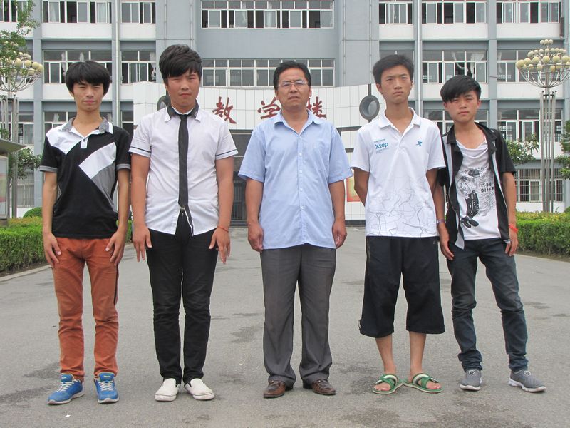 班主任任怀远(中)、张浩楠(左一)、杨志国(左二)、赵强(右二)、武笑笑(右一)