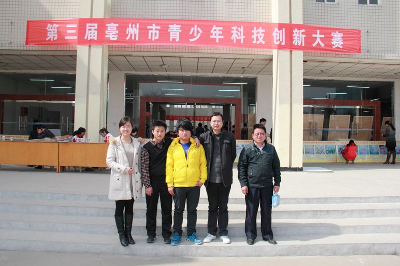 3月5日,我校由校团委副书记郑秀云带队,辅导教师兰青云、付军带着自己的学生王富强和马节俊参加了在亳州一中隆重举行第三届亳州市青少年科技创新大赛,