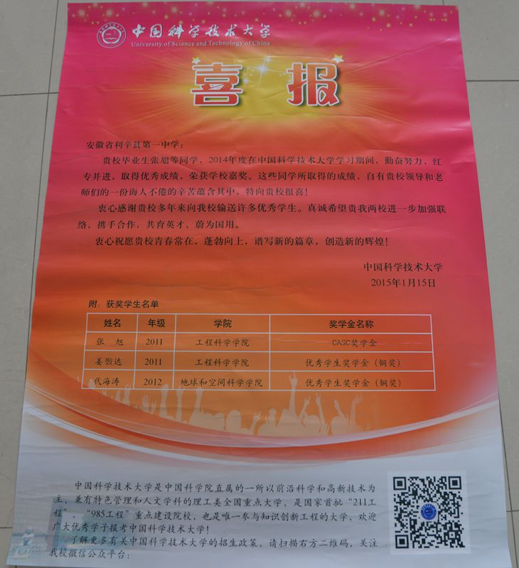我校学子获中科大奖学金