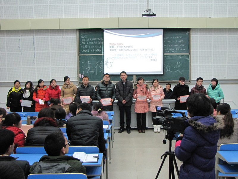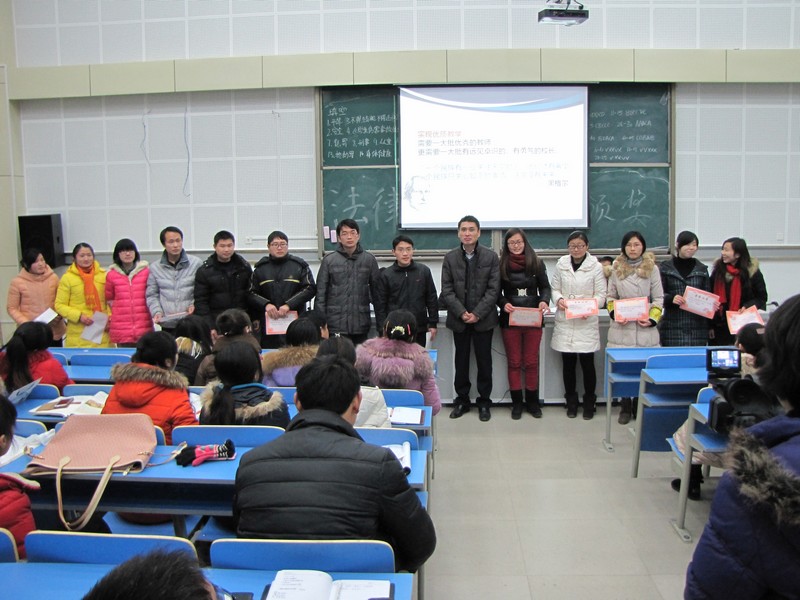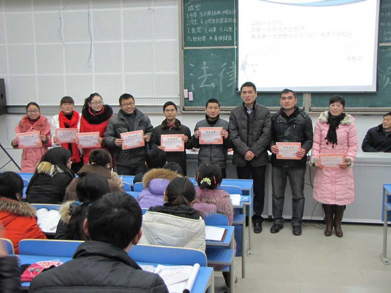 2013年12月27日课外活动时间,我校在滨河校区高一年级阶梯教室举行青年教师优质课大赛颁奖仪式暨总结大会,王学哲校长、潘化鹏书记、吴峰副校长、王晓泉副校长、张帮群主任、朱文成主任和广大青年教师出席大会。